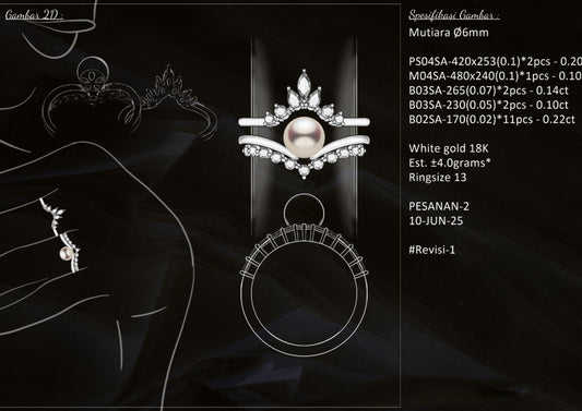 LV PEARL MAMA CUSTOM: Pearl Bridal Engagement Ring & Band
