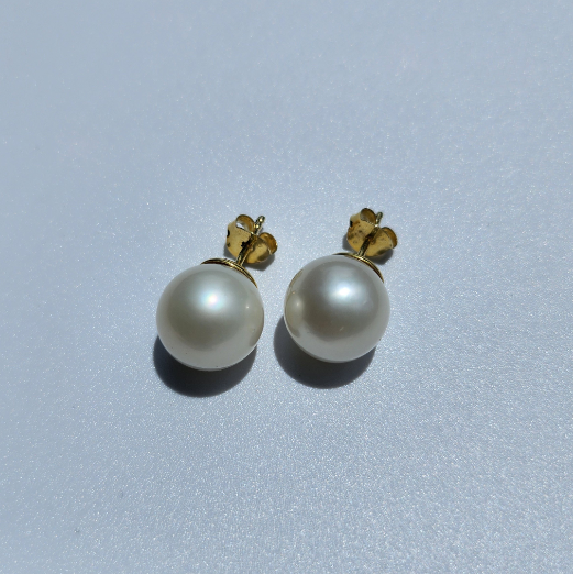 'CINTA' White South Sea Pearl Stud Earrings (12mm)