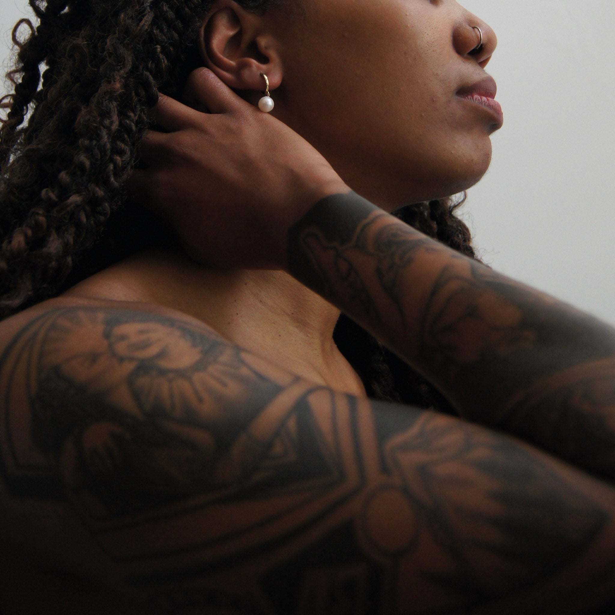‘MATAHINA’ Tahitian Pearl Drop Huggie Hoop Earrings (12mm)